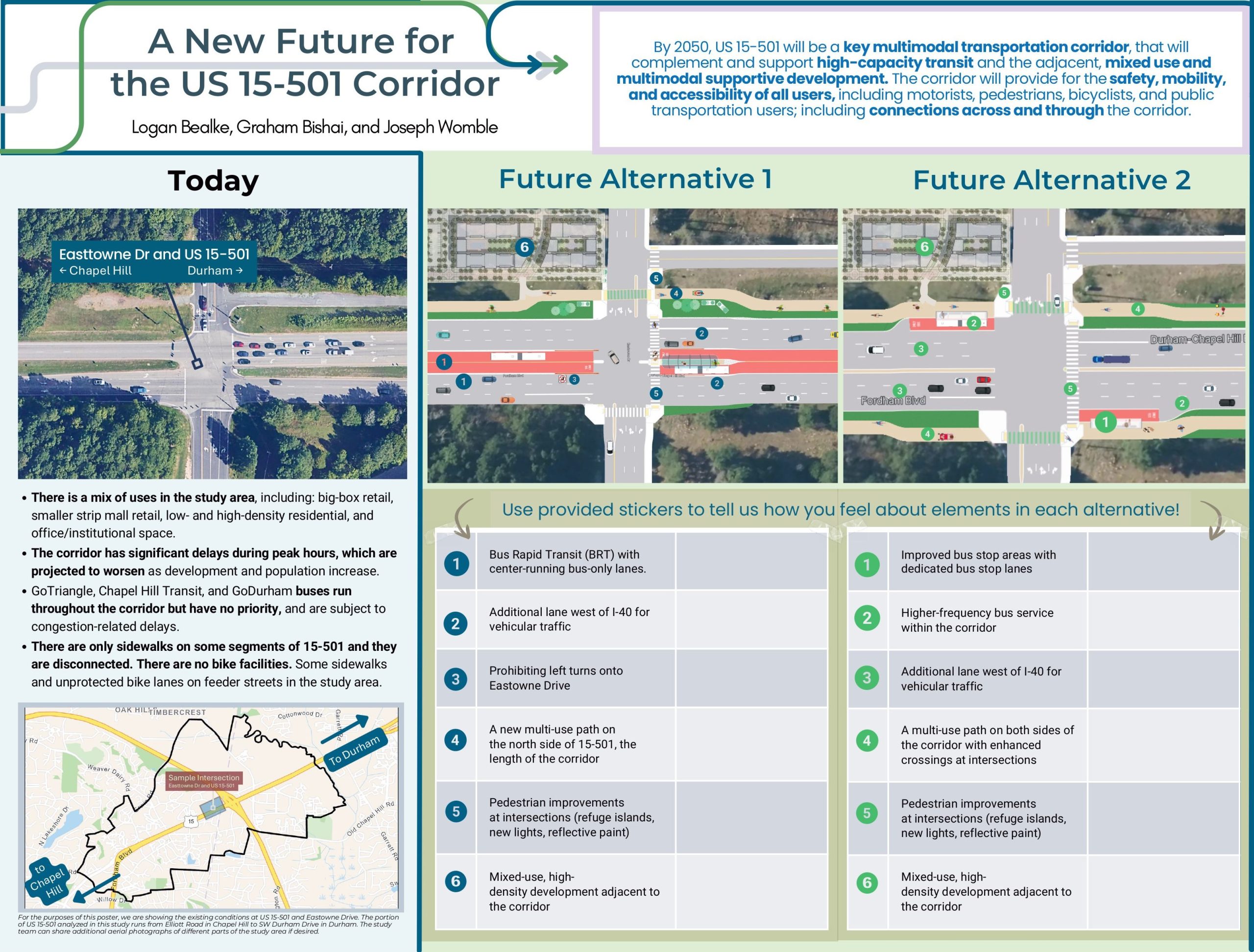A community engagement poster for a multi-modal roadway redesign.